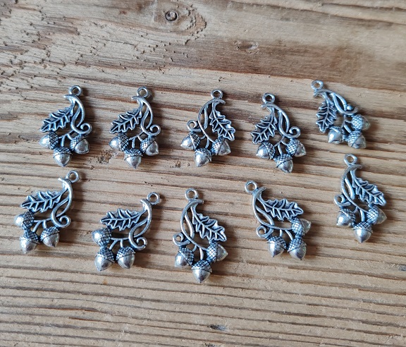 5 Anhänger "Eicheln mit Blatt", antik-silberfarben