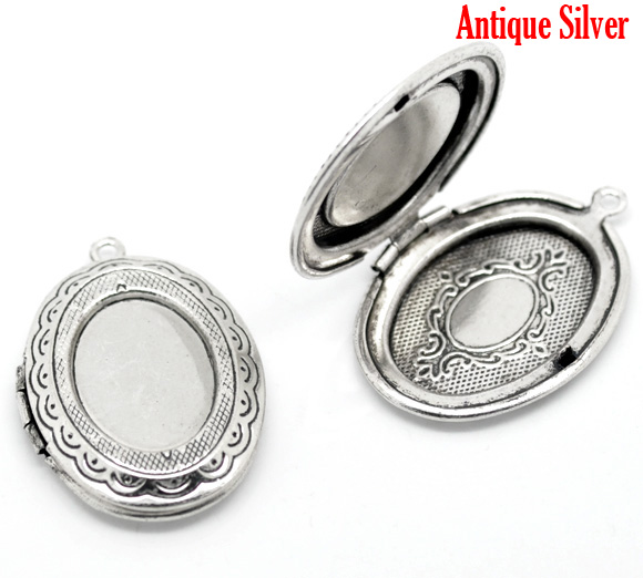 Das ovale Medaillon lässt sich öffnen und hat auf der Vorderseite eine Cabochon Fassung für 18 x 13 mm Cabochons