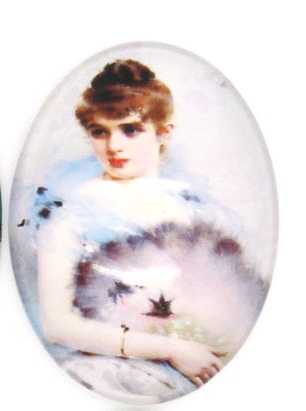 1 Glascabochon 4 x 3 cm, Nostalgiemotiv