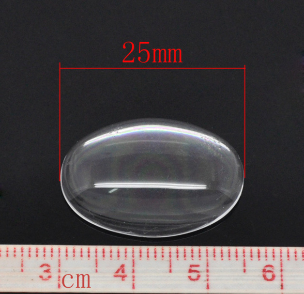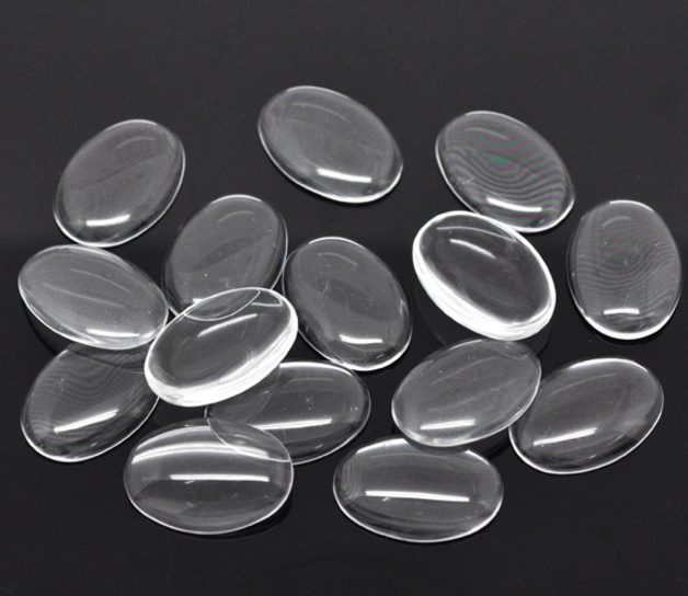 10 ovale Glascabochons, klar, 25 x 18 mm