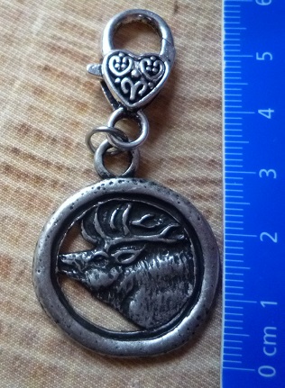 mit verziertem Karabinerhaken zum Befestigen an z.B. Charivaris