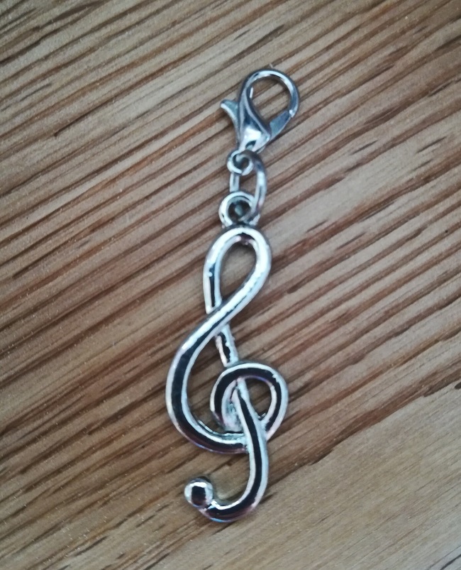 "Notenschlüssel" incl. Karabinerhaken zum Befestigen an Ketten, Charivaris, Schlüsselanhängern ... aus Metall, silberfarben Größe: Anhänger ca. 3 cm Karabiner ca. 1,2 cm Gesamtlänge: ca. 4,8 cm Sicherheitshinweis: Nicht für Kinder unter drei Jahren geeignet wegen verschluckbarer Kleinteile, Erstickungsgefahr.