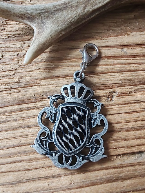 "bayerisches Wappen" sehr schön verziert mit Karabinerhaken zum Befestigen an Ketten, Charivaris oder Armbändern