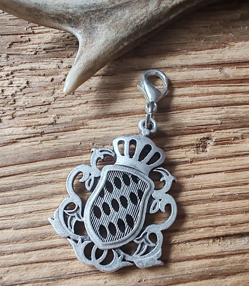 "bayerisches Wappen" sehr schön verziert mit Karabinerhaken zum Befestigen an Ketten, Charivaris oder Armbändern