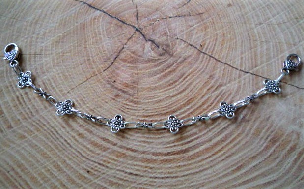 aufwändig gemachter Kettenrohling aus Metall mit Blumenverzierung, antik-silberfarben
