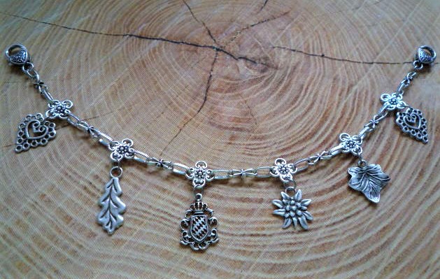 Charivari / Dirndlschmuck / Miederschmuck / Lederhosenschmuck sehr schön an der Schürze oder auch an Damenlederhosen mit 6 fest angebrachten sehr hochwertigen Anhängern aus ZAMAK