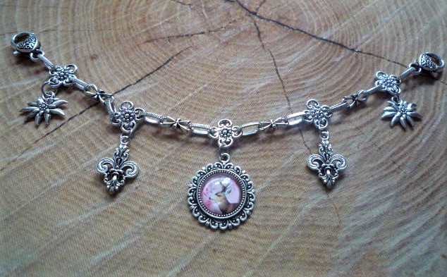 davon 1 Glascabochonanhänger mit Hirschmotiv und 4 Anhänger aus Metall in antik-silberfarben