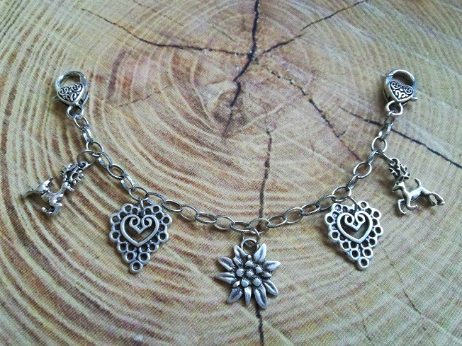 mit 5 Trachtenanhängern aus Metall in antik-silberfarben
