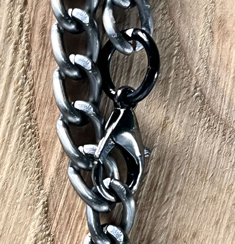 Mittels des kleinen Karabinerhakens an der Kette können Sie dann die Länge individuell anpassen.
