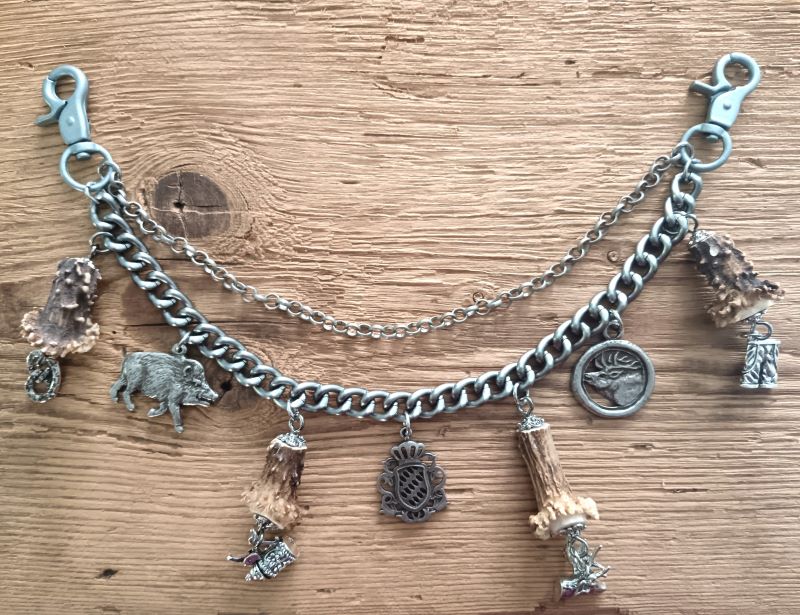 1 Lederhosen-Charivari, 7 Anhänger, zweireihig, ca. 34 cm