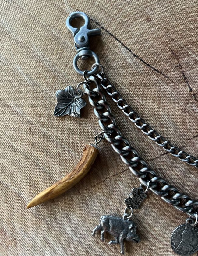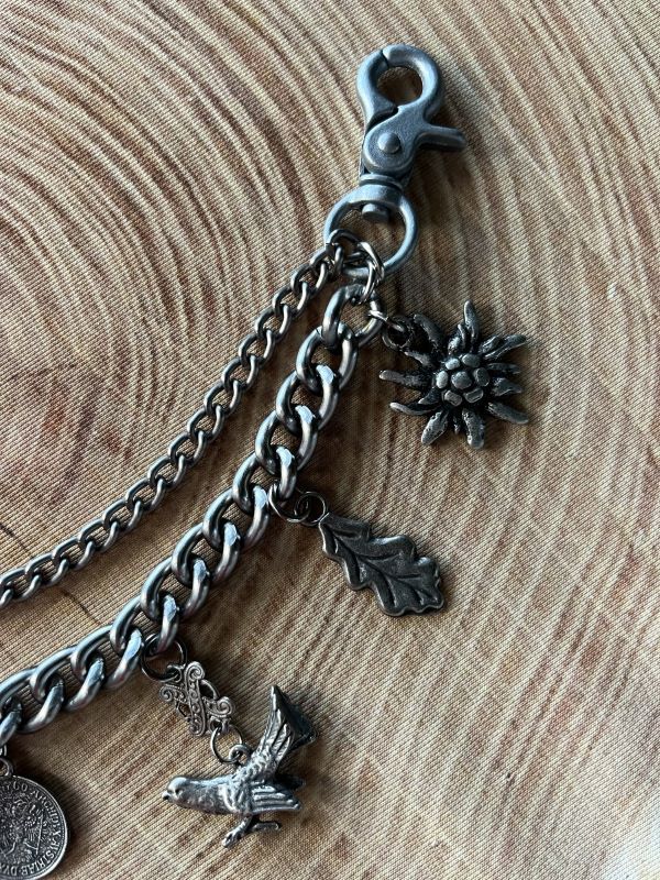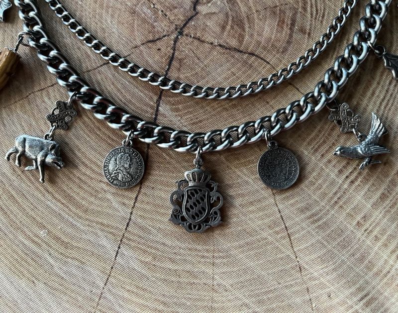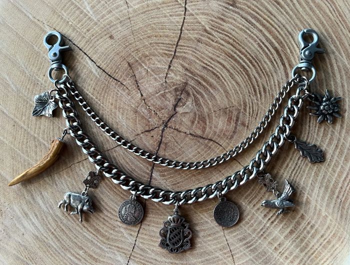 1 Lederhosen-Charivari, 9 Anhänger, antik-silberfarben, ca. 33 cm - Kopie