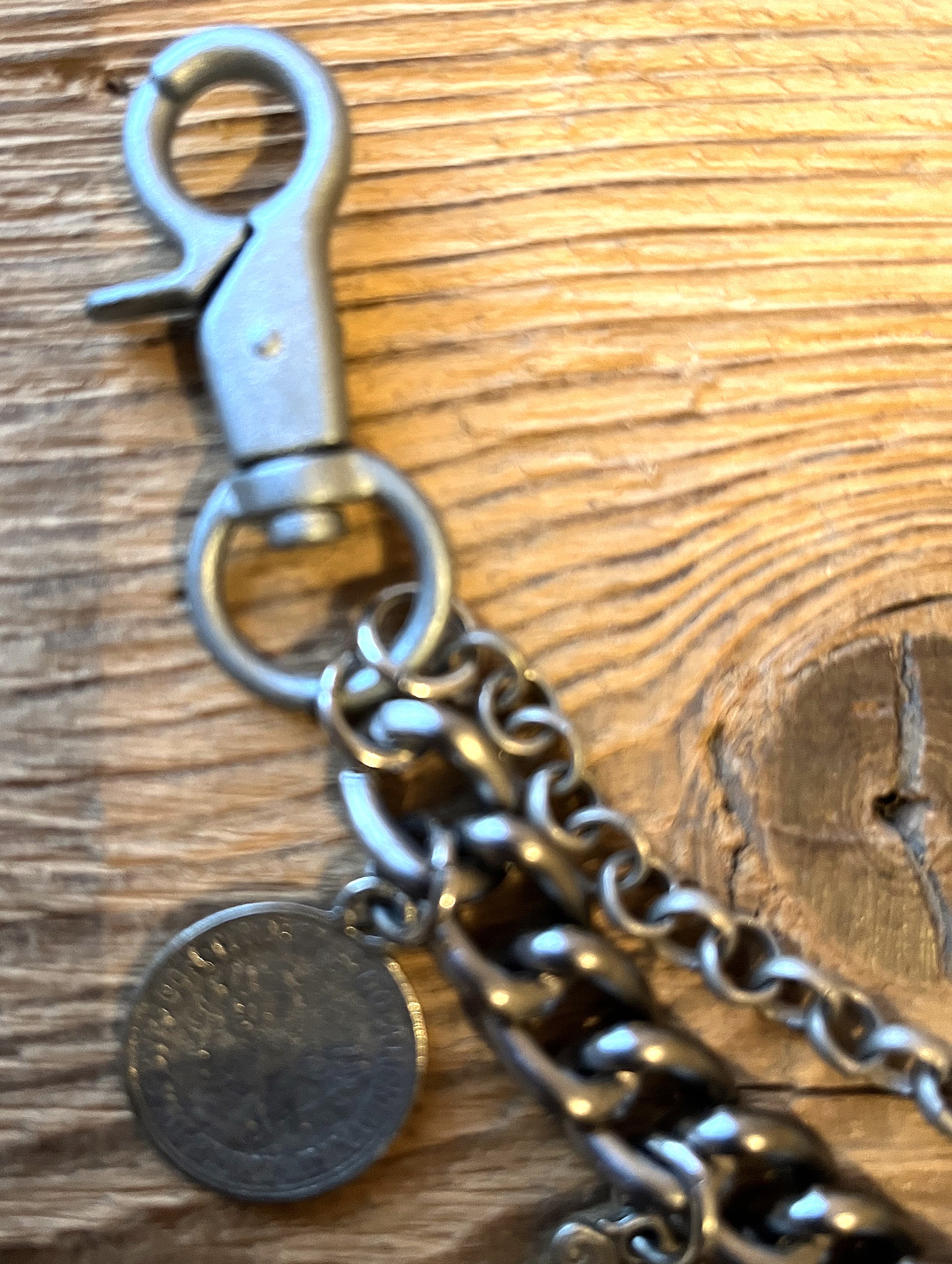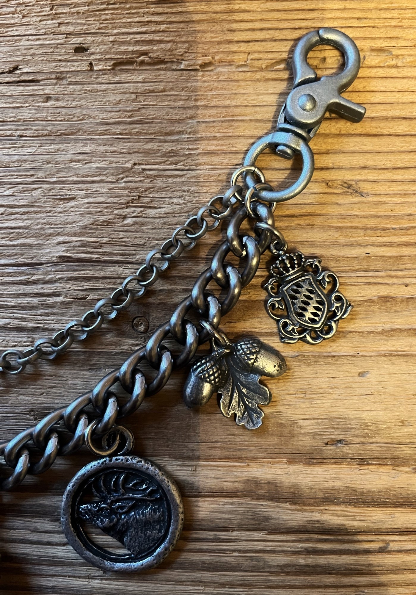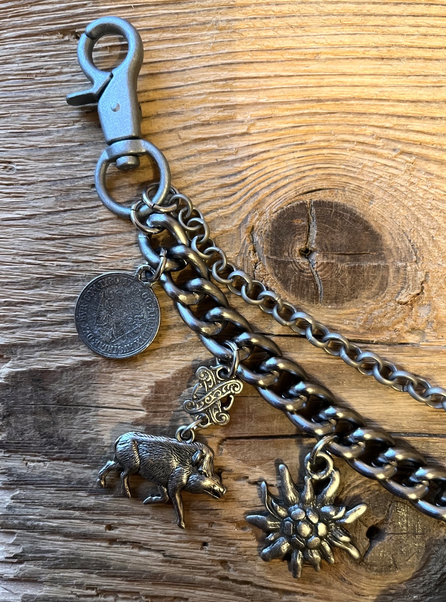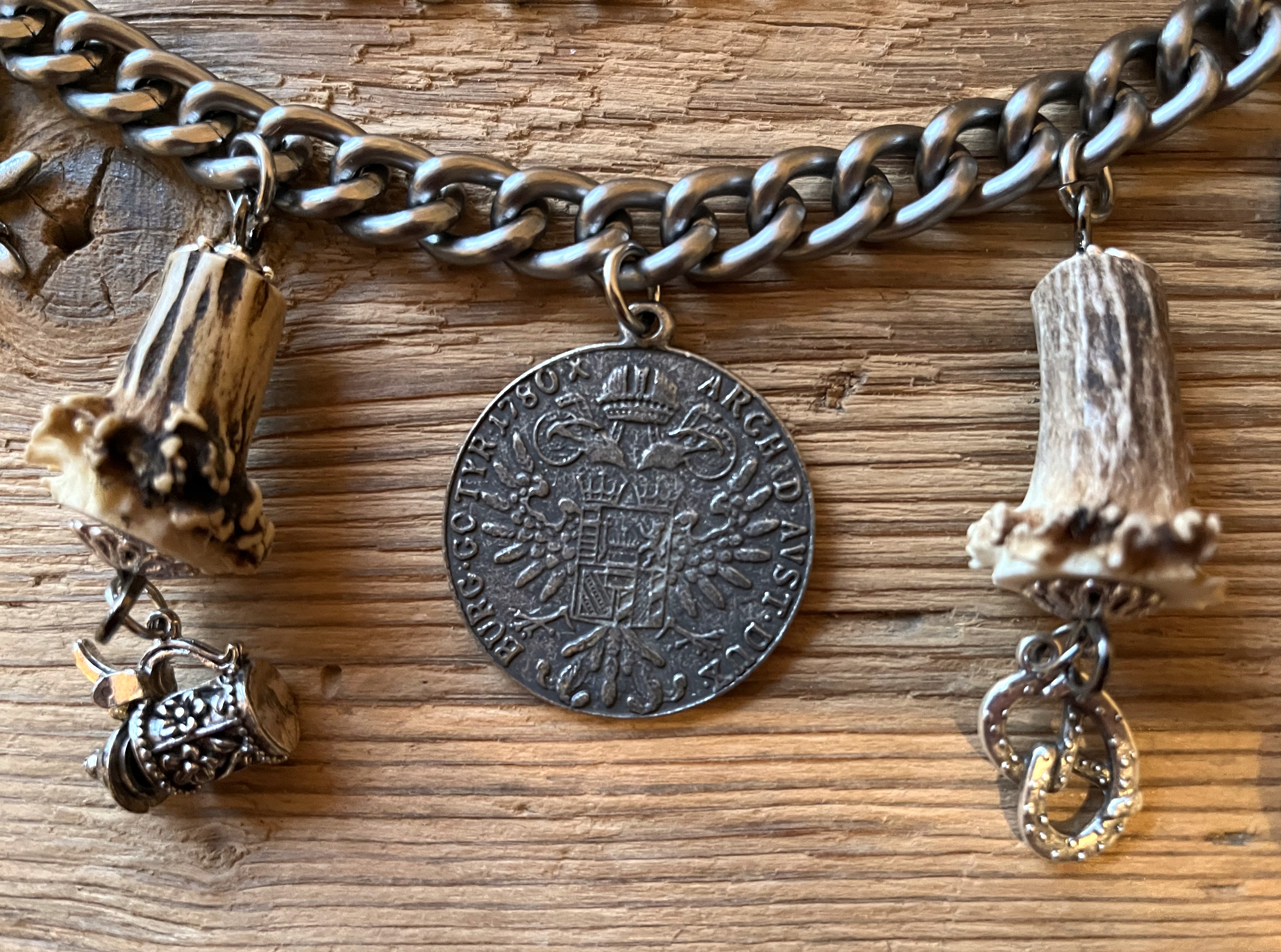 1 Lederhosen-Charivari, 9 Anhänger, zweireihig, ca. 34 cm