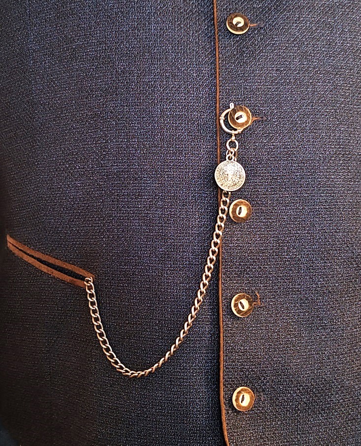1 Westenkette, Schmuckkette für Herrenwesten, antik-silberfarben, ca. 30 cm