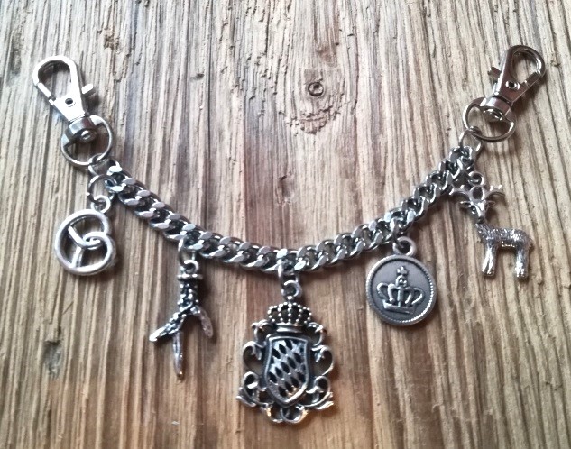 Das Charivari hat 5 fest angebrachte Trachtenanhänger aus Metall in antik-silberfarben