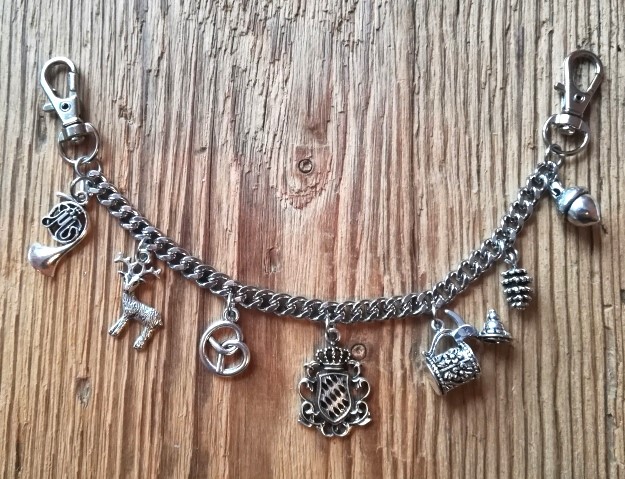 Damit das Charivari richtig passt, kann gerne eine individuelle Wunschlänge angegeben werden. Bitte dazu den Abstand der Gürtelschlaufen/Knöpfe messen (+ 2-3 cm zugeben), an denen das Charivari eingehängt werden soll.