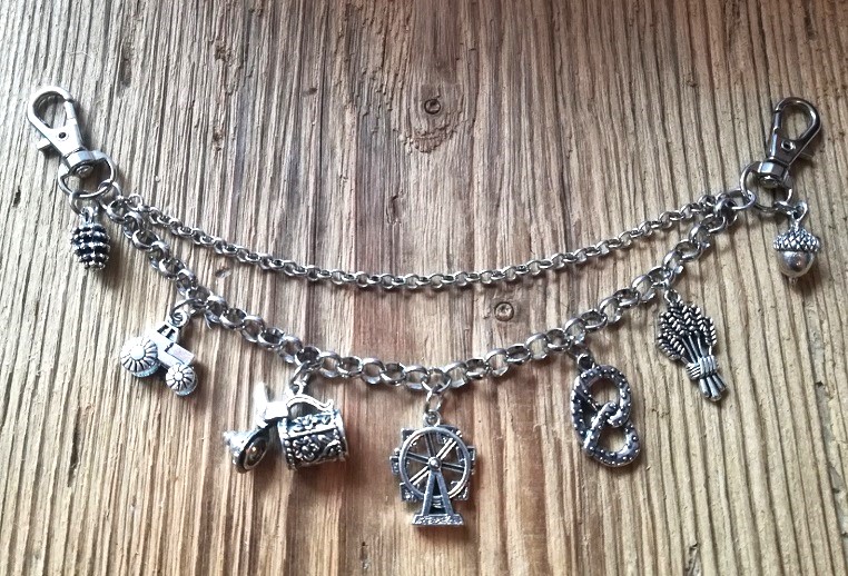 Das Charivari hat 7 fest angebrachte Trachtenanhänger aus Metall in antik-silberfarben