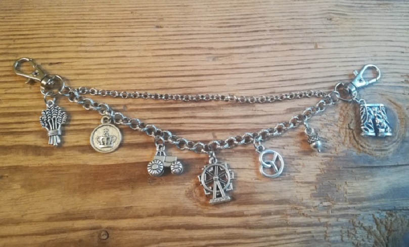 Das Charivari hat 7 fest angebrachte Trachtenanhänger aus Metall in antik-silberfarben