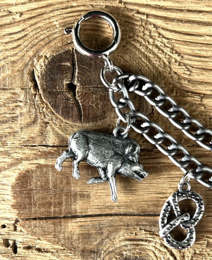 Bitte dazu den Abstand der Gürtelschlaufen/Knöpfe messen, an denen das Charivari eingehängt werden soll (wir geben dann ca. 2-3 cm zu).