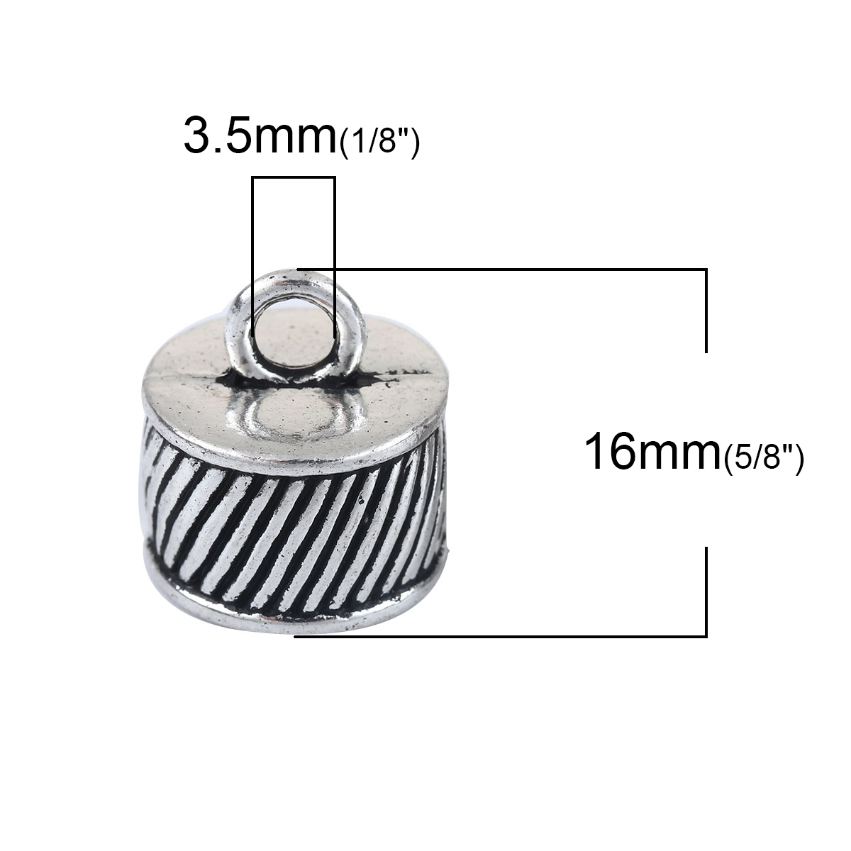 5 Endkappen, 16 x 15 mm, antik-silberfarben