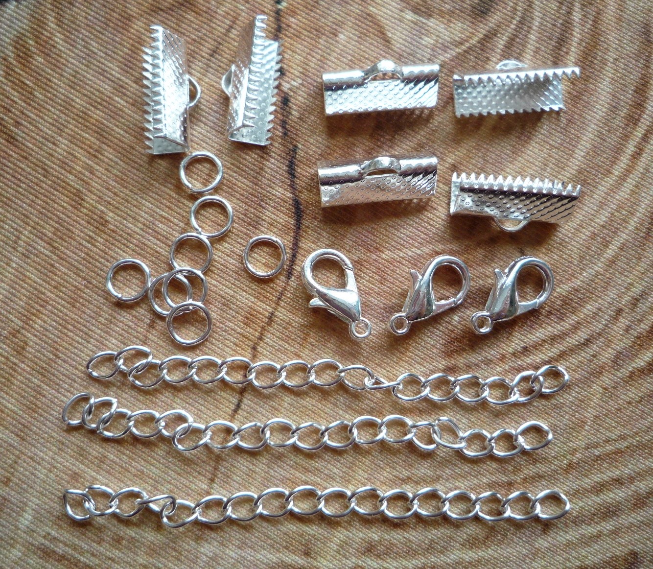 enthalten sind 3 Karabinerhaken, Biegeringe, 3 Verlängerungskettchen und 6 Bandendstücke