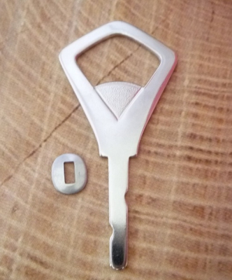 Kapselheber / Flaschenöffner - Rohling Vorderteil Stahl, vernickelt mit Abdeckplättchen zum Einbau in Holz- oder Horngriffe Länge ca. 8,1 cm Stift ca. 3,2 cm Packungsgröße nach Wahl