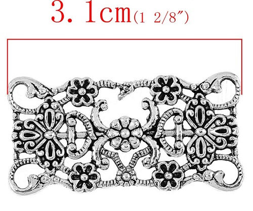 10 filigrane Verbinder, 31 x 16 mm, antik-silberfarben