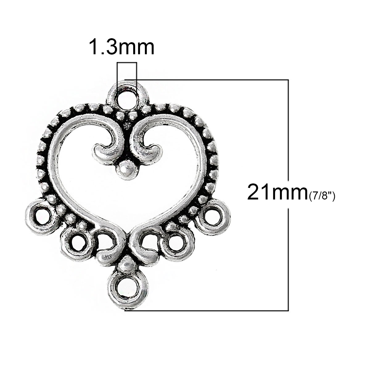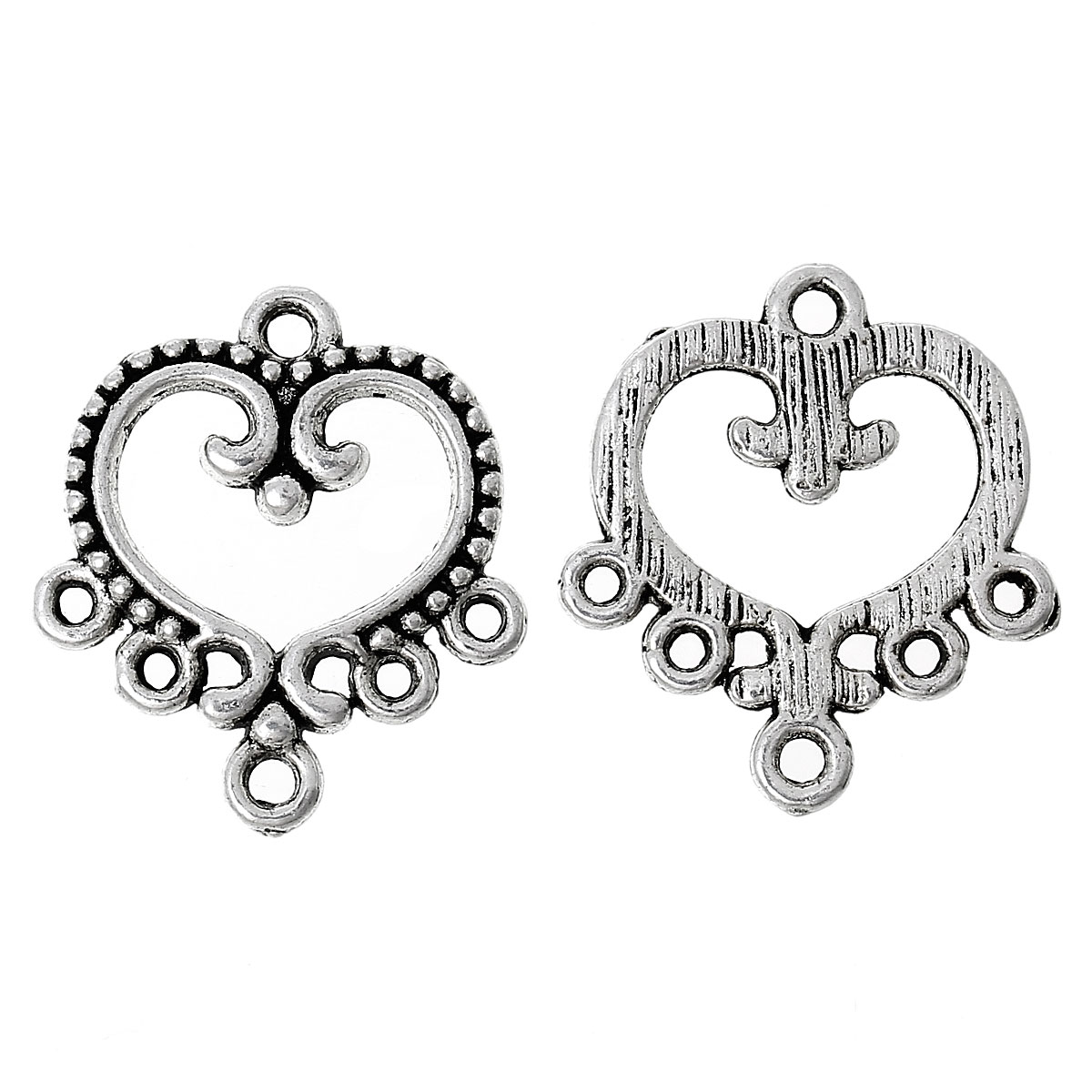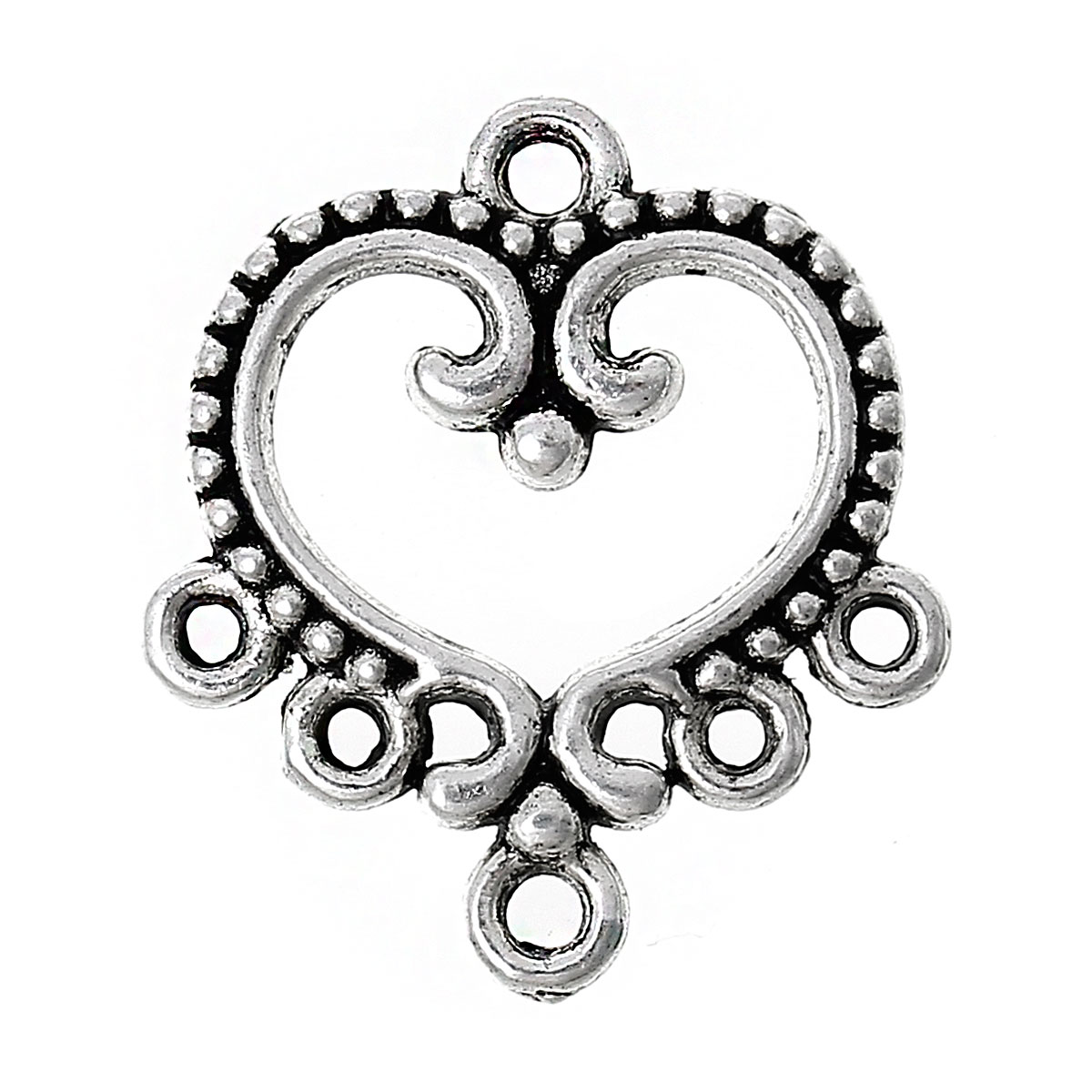 5 Verbinder, Herz, 19 x 21 mm, antik-silberfarben