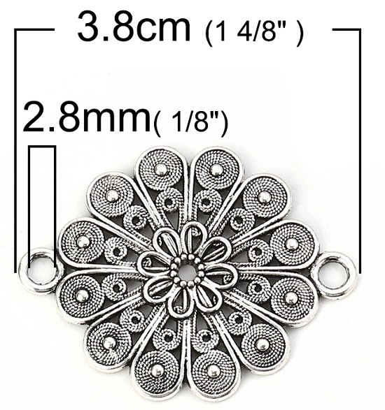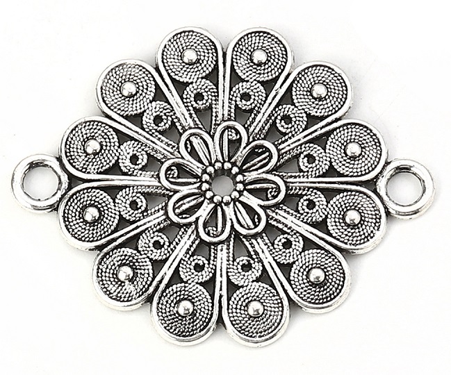 1 Verbinder, "Blume", 38 x 30 mm, antik-silberfarben