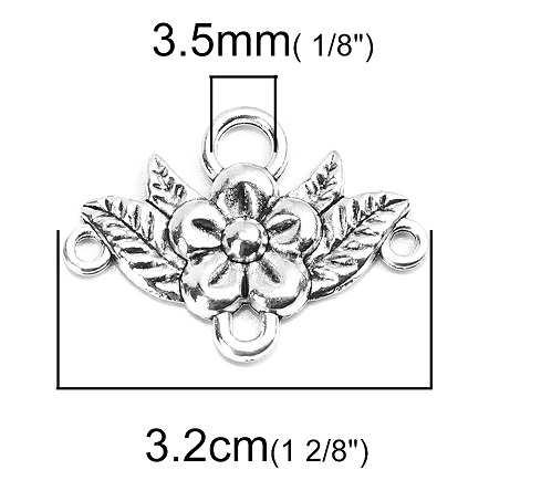 5 Verbinder, Blumen, 32 mm, antik-silberfarben