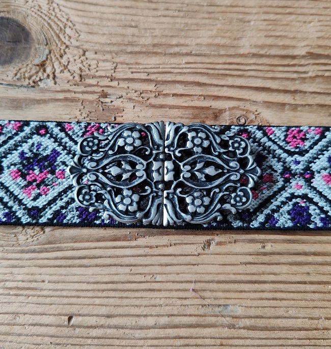 Sie erhalten 1 m elastisches Band und 1 Trachtenschließe zum Selbstanfertigen Ihres Stretchgürtels.