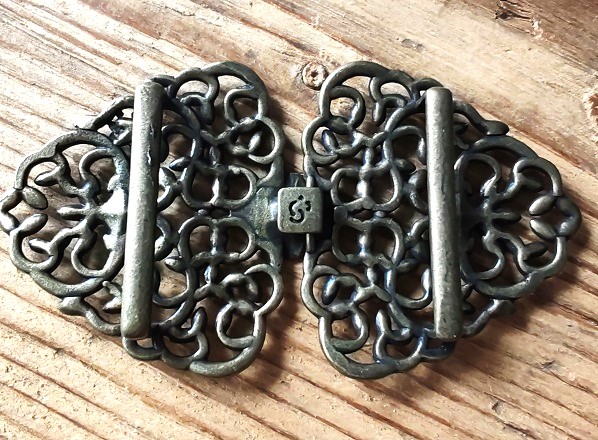 1 Schließe, Dirndlschließe, Schürzenschließe, antik-messingfarben