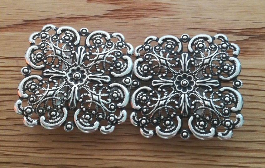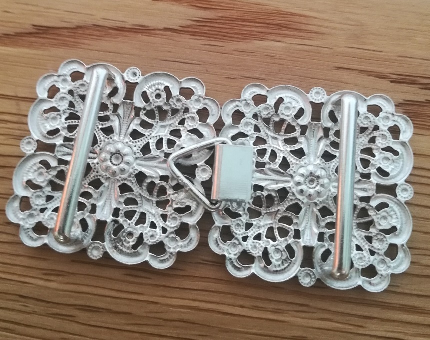 1 Schließe, Dirndlschließe, Schürzenschließe, antik-silberfarben, Steg 3 cm