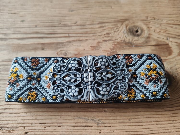 1 Trachtengürtel /Stretchgürtel mit dekorativer Metallschließe in antik-silberfarben Farbe: ocker-braun-schwarz Breite ca. 4 cm 5 Größen zur Wahl: 70 - 75 cm 75 - 80 cm 80 - 85 cm 85 - 90 cm 90 - 95 cm Material: Gürtel: 70 % Polyester, 30 % Gummi, Schließe: Metall-Legierung Im Shop finden Sie auch Stretchbänder und Schließen für Ihre eigene Gürtelherstellung.