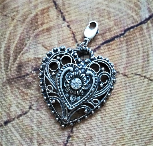 der große Herzanhänger ist besonders filigran gearbeitet und eine edle Ergänzung für Ihre Trachtenkette oder Ihr Charivari.