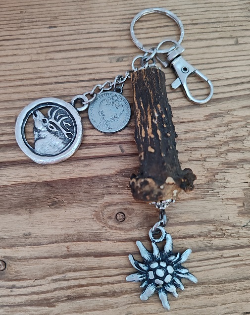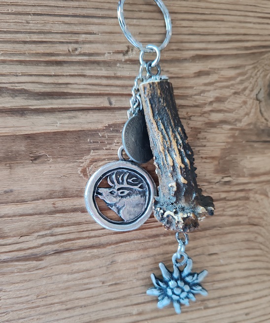 mit echtem Rehhorn, sowie 3 Metallanhängern in antik-silberfarben