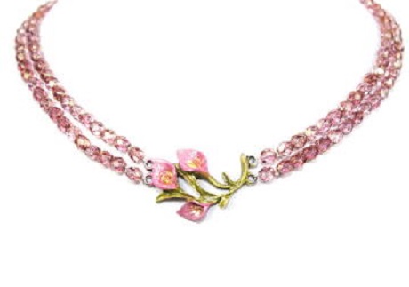 Zweireihiges Collier aus zarten schimmernden Glasperlen mit einem handbemalten Blütenanhänger.