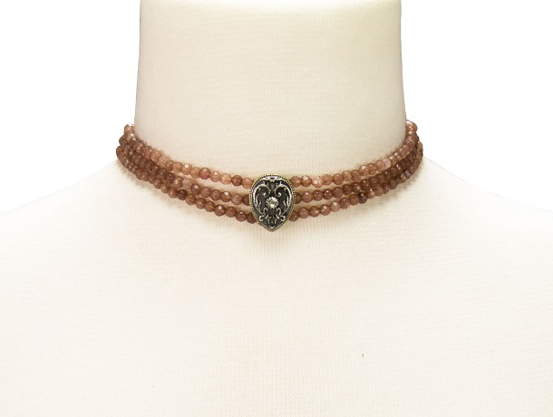3-reihige Perlen-Kropfkette "Adela" (braun)