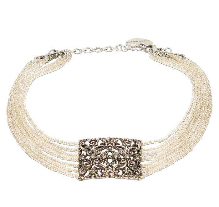 Die Trachtenkette Ornament-Edelweiss ist eine 7-reihige Perlenkropfkette aus sehr filigranen Perlen gearbeitet.