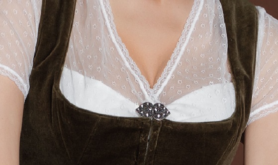 Verziert mit Glitzer-Steinen eine ideale Brosche für hochgeschlossene Blusen oder Dirndl.
