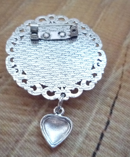 Fassung mit verziertem Rand aus Metall, antik-silberfarben und einem kleinen Herzanhänger aus Metall