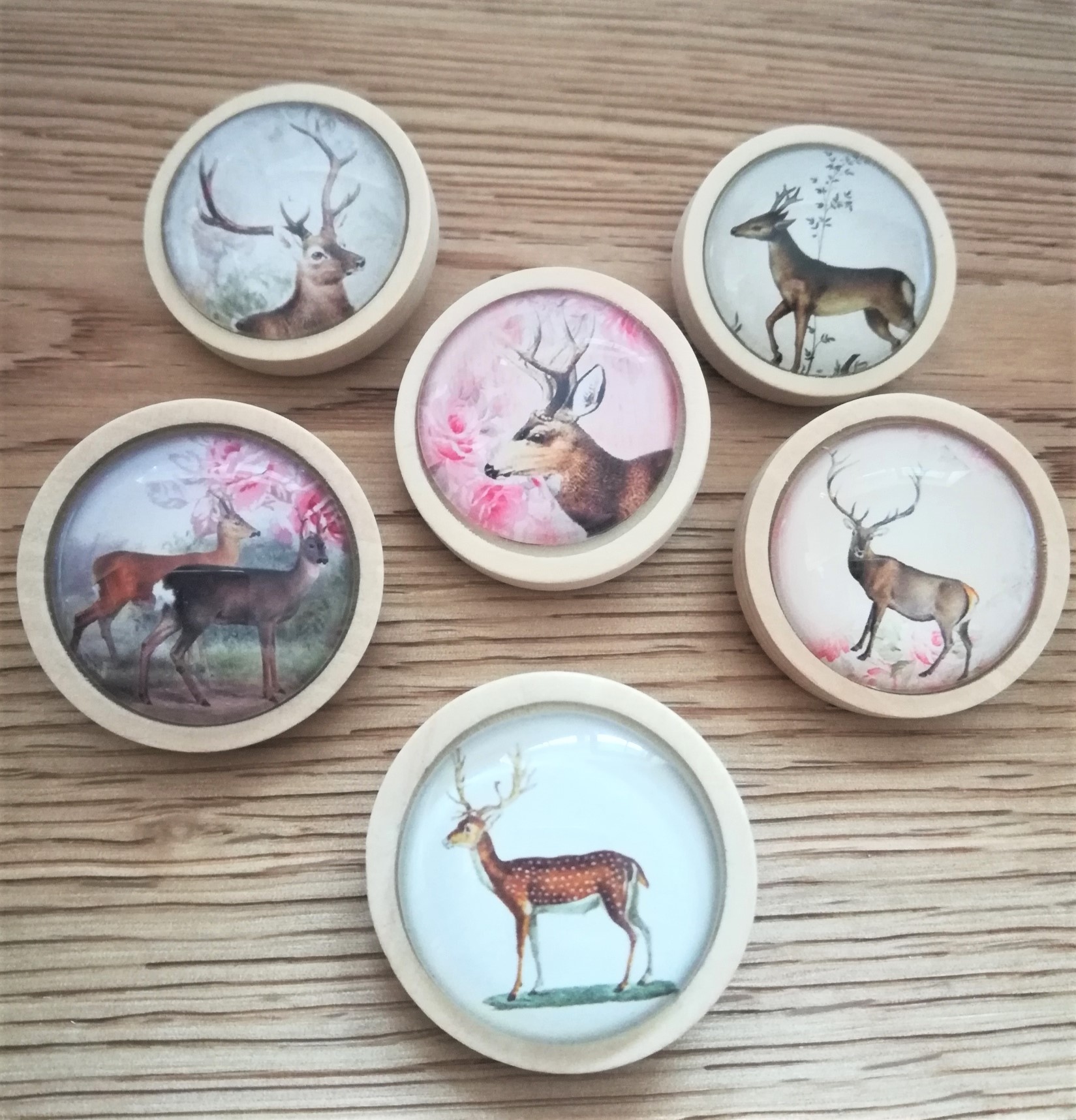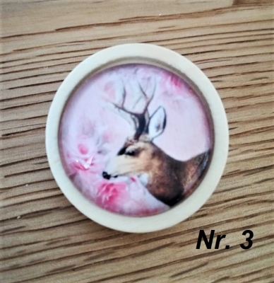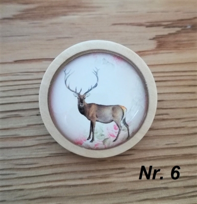 1 Holz-Brosche, Hirsch- oder Rehemotiv, 6 Motive zur Wahl