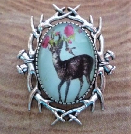 mit romantischem Trachtenmotiv "Reh" (Glascabochon)