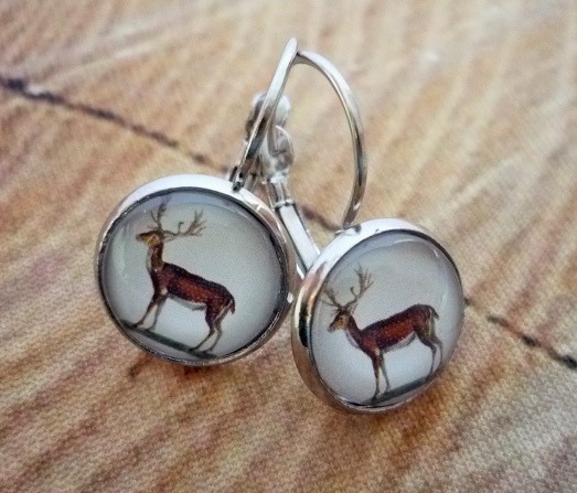Glascabochons mit Hirschmotiv, 12 mm Durchmesser