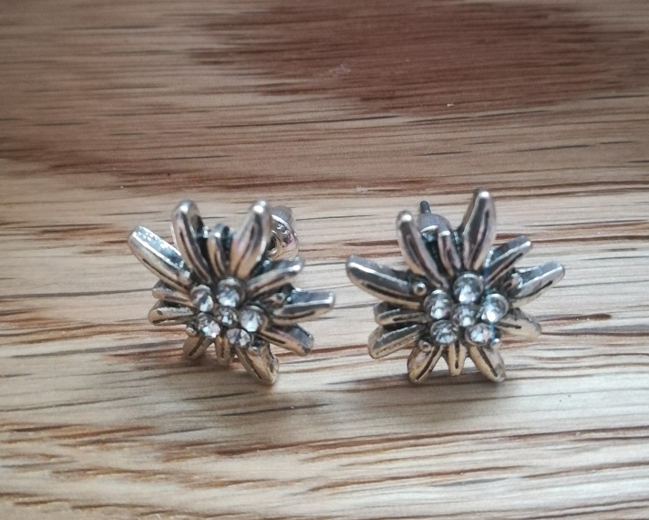 - Durchmessser Trachtenohrringe mit Edelweiss und Strass-Steinen: ca. 2 cm