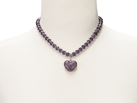 Der Herzanhänger ist auf der Vorderseite mit unzähligen Glitzer-Steinen besetzt. Die Schliffperlen der Trachtenkette sind immer farblich passend.