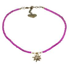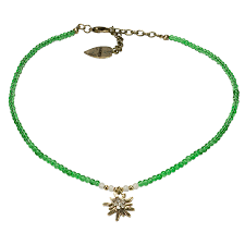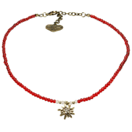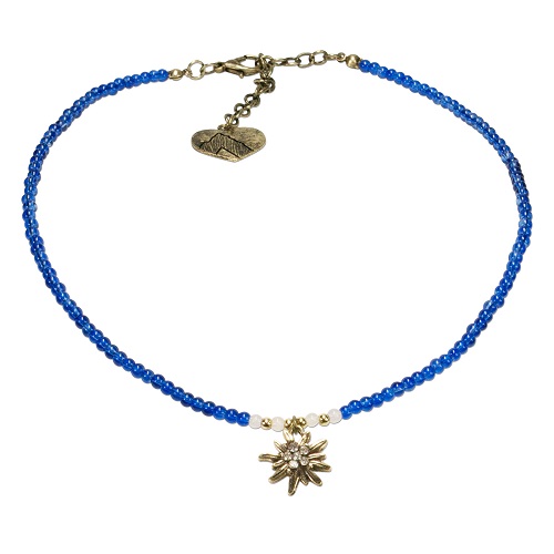 Als Anhänger wurde ein antikgold-farbenes Edelweiß mit Glitzersteinchen verwendet und rundet das Bild dieser schönen Dirndlkette ab.
