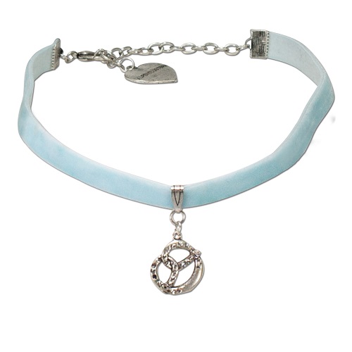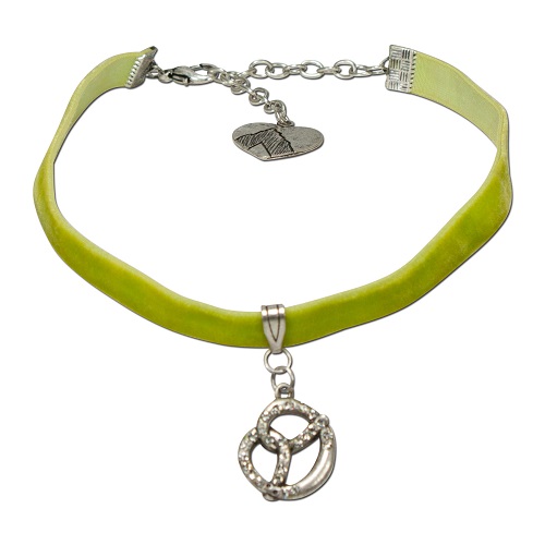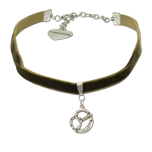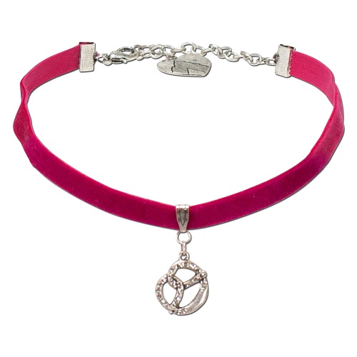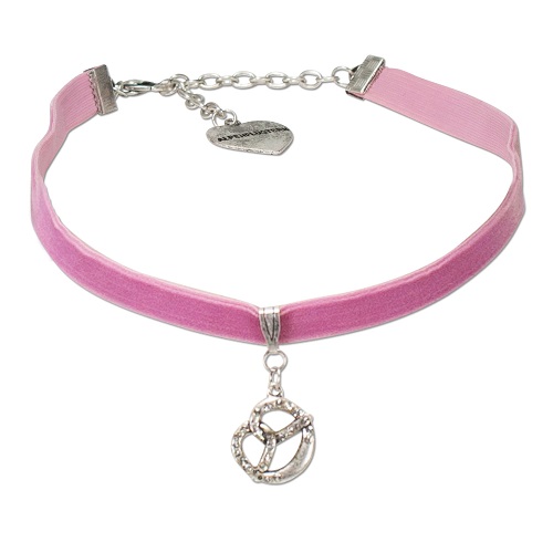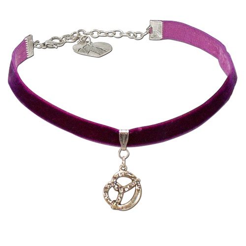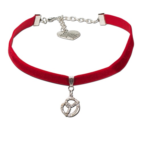 Die Samtband-Halskette ist nicht nur durch den Brezen-Anhänger schön zum Anschauen, sondern garantiert durch die Elastizität des Bandes auch einen hohen Tragekomfort.