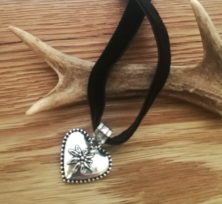 1 Samt-Kropfband "Herz mit Edelweiß"