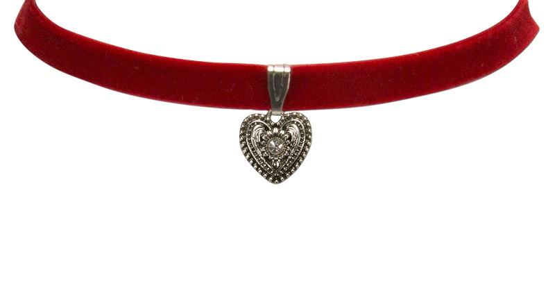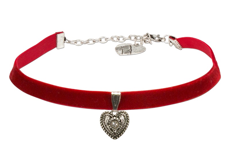 1 schmales elastisches Samtkropfband Trachtenherz, von Alpenflüstern, rot